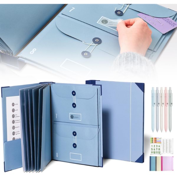 Vključuje 10 razširljivih kuvert (6 polne velikosti, 4 polovične velikosti), ki lahko sprejmejo do 10 listov vsaka.