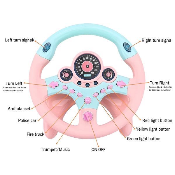 Ta volan, zasnovan z zabavnimi zvoki, utripajočimi lučmi in gumbi, ki jih je enostavno pritisniti, očara mlade voznike in jih vključi v domišljijsko igro.