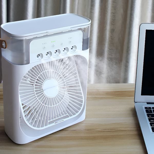 Ta prenosna klimatska naprava s 600-mililitrskim rezervoarjem za vodo zagotavlja daljše hlajenje in vlaženje, kar je idealno za večurno uporabo brez pogostega polnjenja.